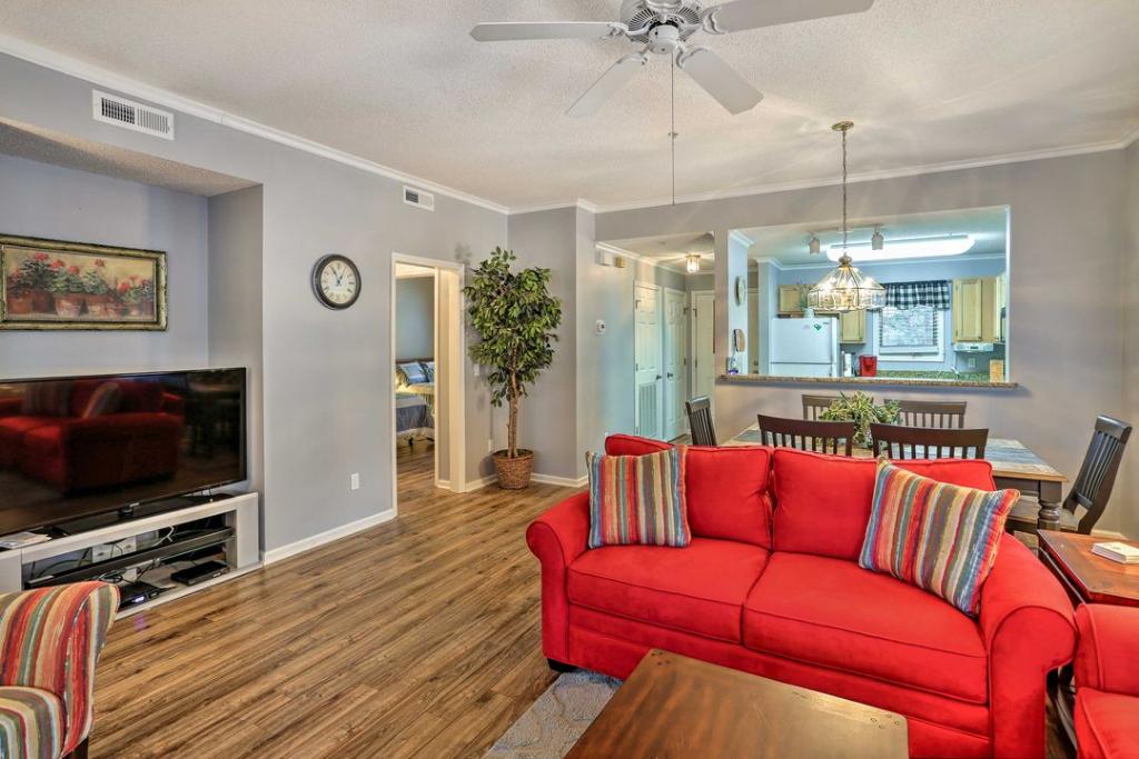 Experience the best of North Myrtle Beach at this vacation rental, ideal for golfers, beach lovers, small families, and snowbirds. Situated in the Tidewater Plantation, near the Intracoastal Waterway, this 2-bed, 2-bath condo overlooks the Tidewater Golf Club and features a screened porch, community pool and hot tub and is just 3.5 miles to the beach. Take advantage of the resort amenities, golf at nearby acclaimed courses, stroll down to Cherry Grove Beach, or shop and dine at Barefoot Landing!